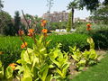 Il y a de très nombreux pieds de cannas dans le jardin du couvent, qui sont de deux types différents : les premiers ont de minuscules fleurs rouges et de hautes feuilles vertes, et les autres ont de larges fleurs orange et des feuilles panachées assez basses.